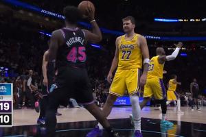 GIF-鲍威尔失误~!东契奇拿球反击转身抛投~!!