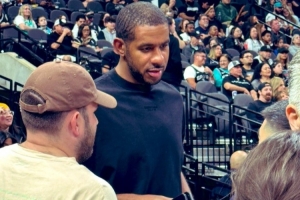 马刺主场迎战开拓者,阿尔德里奇来到现场观战。