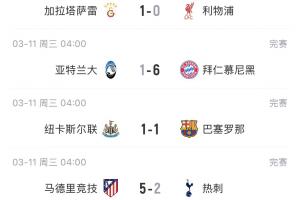 体育资讯03月12日讯 欧冠1/8决赛首回合比赛结束,种子队只有拜仁客场取胜。